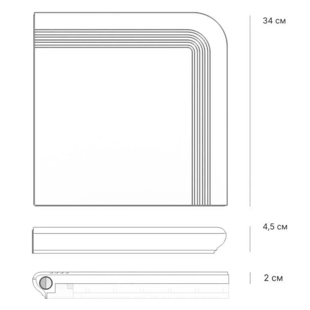 Ступень угловая Verona из искусственного камня для ступеней крыльца, размеры 340х340х20мм цвет Серый.