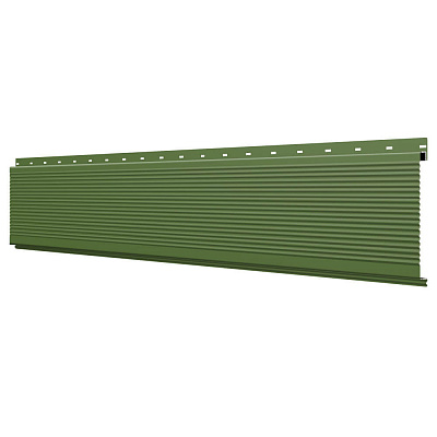 Линеарная потолочно-стеновая панель РИФЛЕНАЯ усиленная цвет RAL6002 Зеленый Лист применяется в качестве софитов для подшивы крыши, наружной и внутренней отделки потолков, стен, фронтонов фасада дома в Алматы.