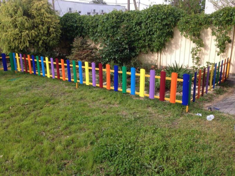 ограждение из разноцветного штакетника